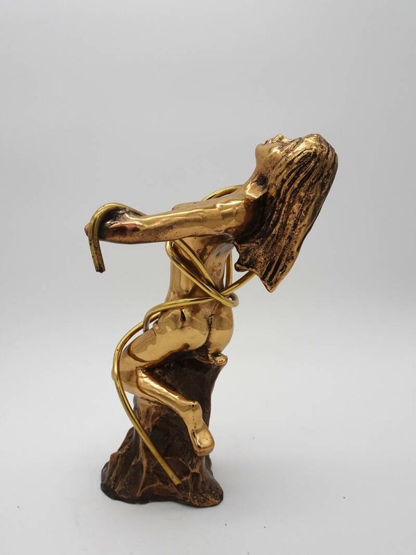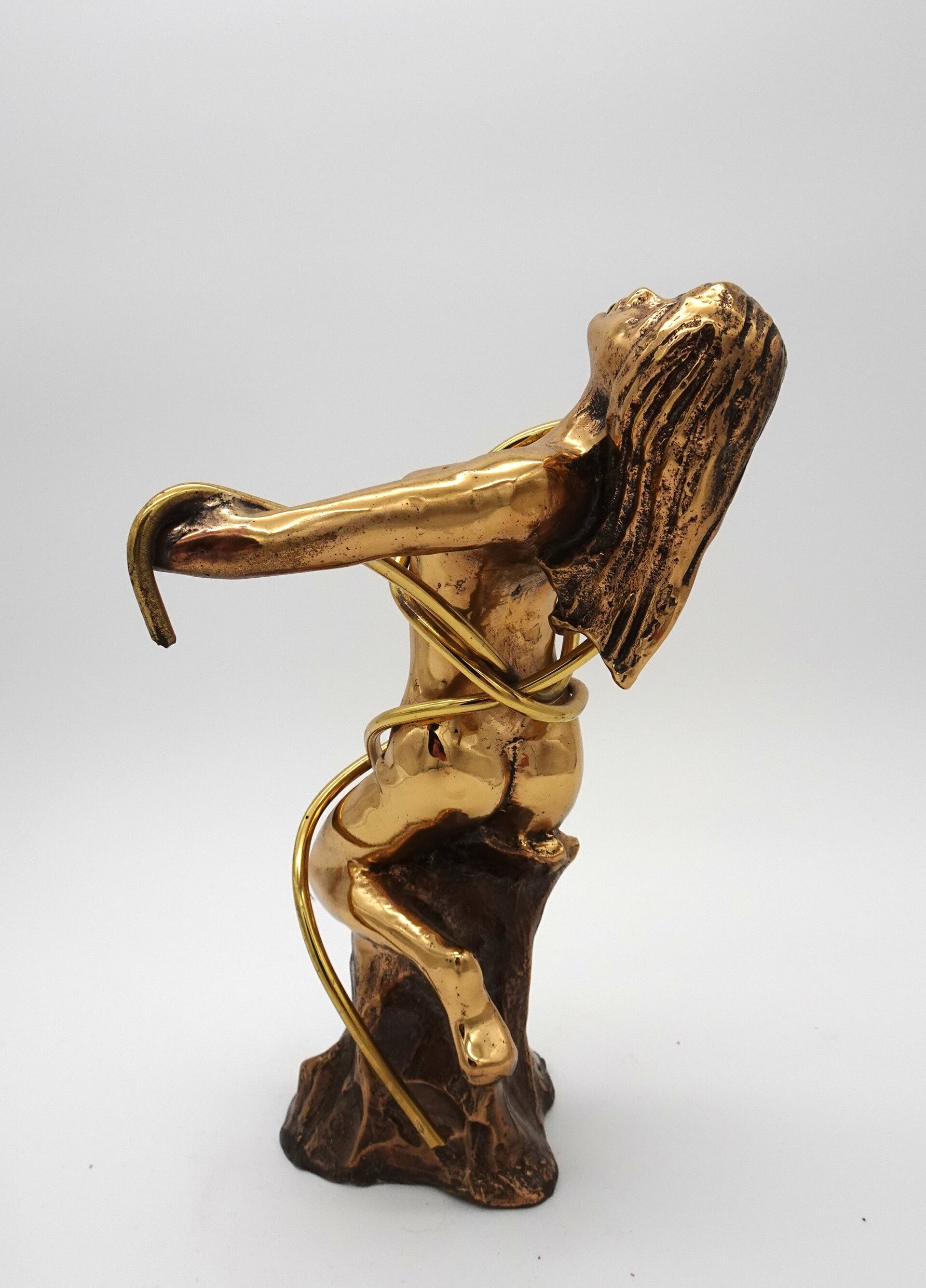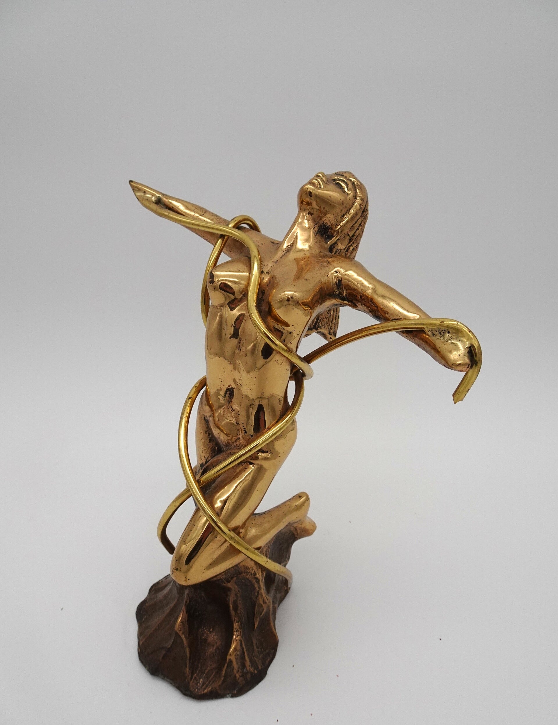 Very rare and nice brutalist sculpture of nude in ropes. This sculpture isn't signed (probably an older base was presented and signature was on there). Very nice quality bronze. Gilded and patinated bronze.