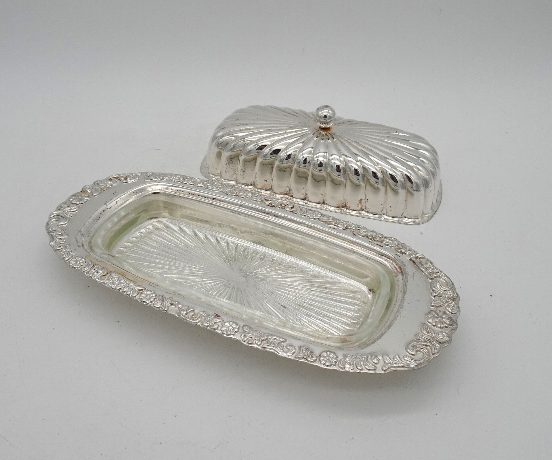 BOTERVLOOT VINTAGE VERZILVERD MET GLAS VICTORIAANS