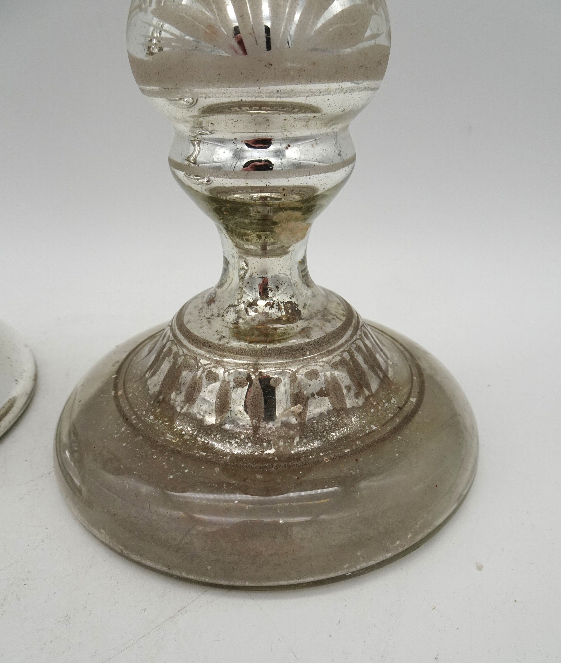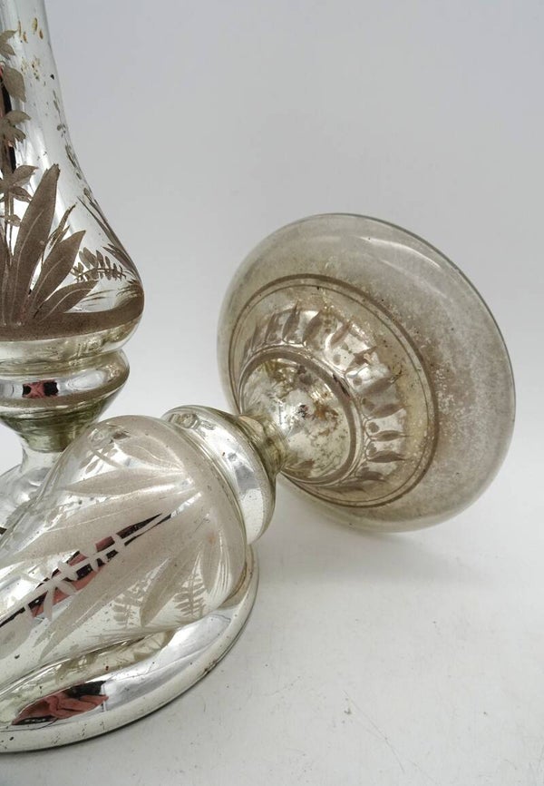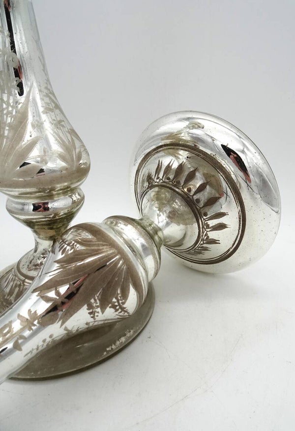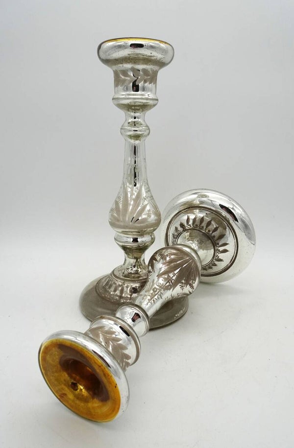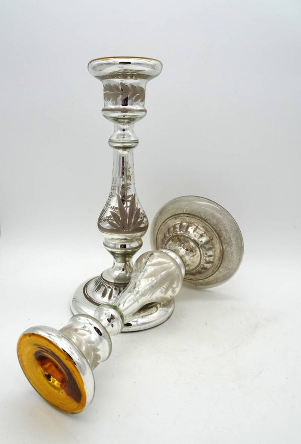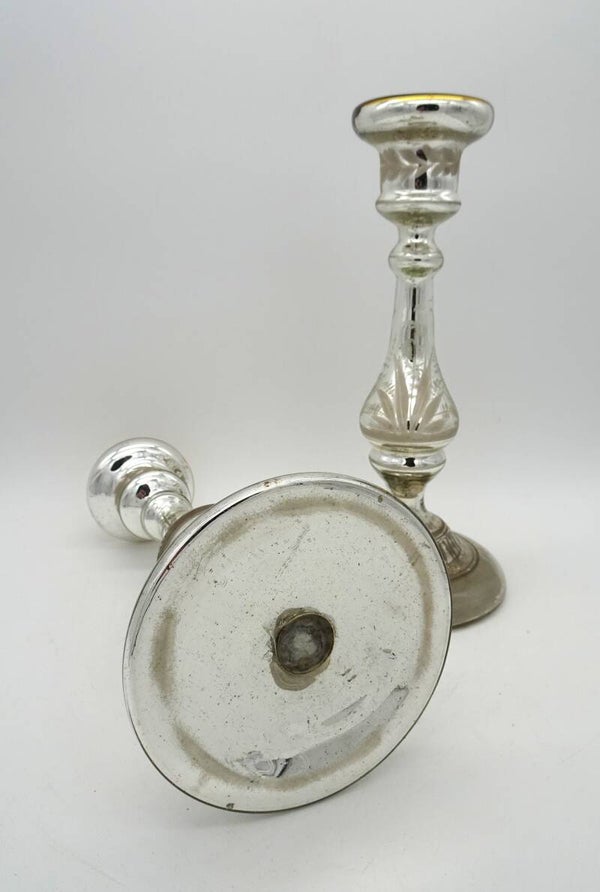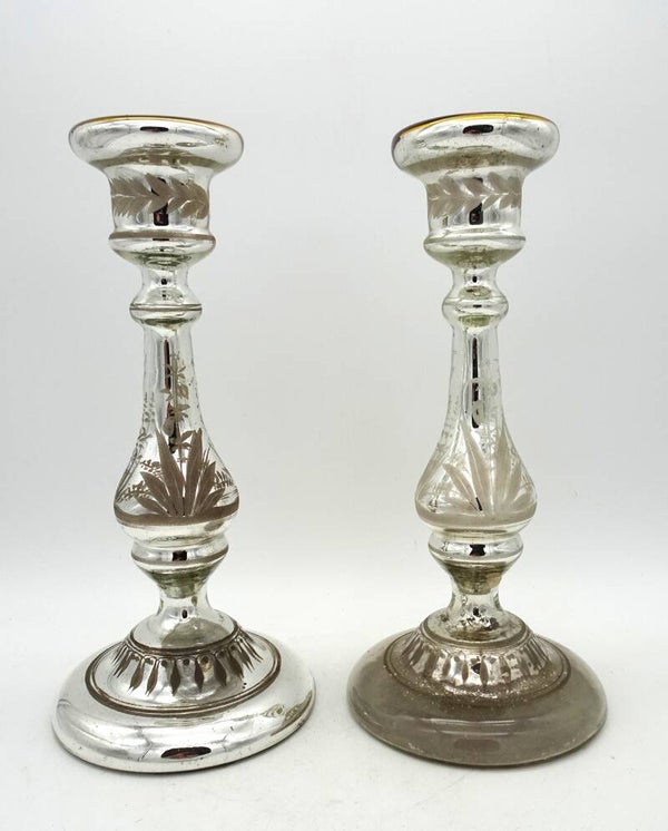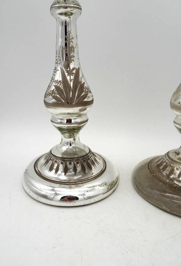 Een paar mooie antiek aremluiszilveren kandelaars is glas met goud bovenaan. een heeft wat verlies van zilver binnenin.