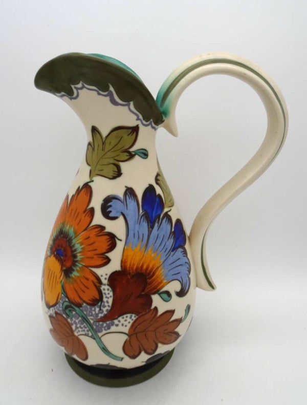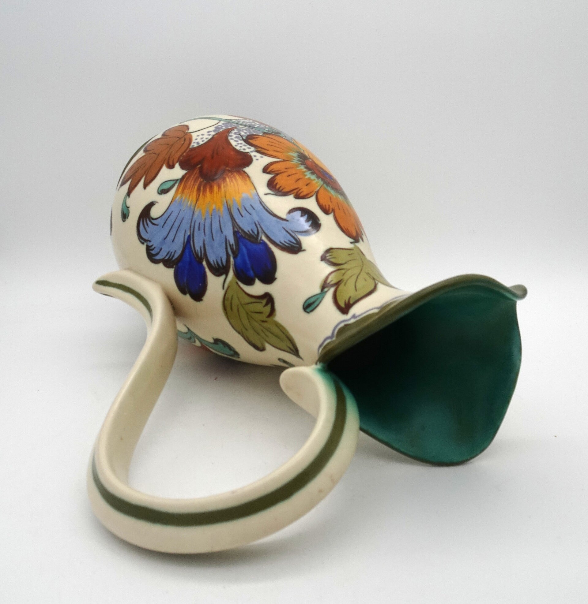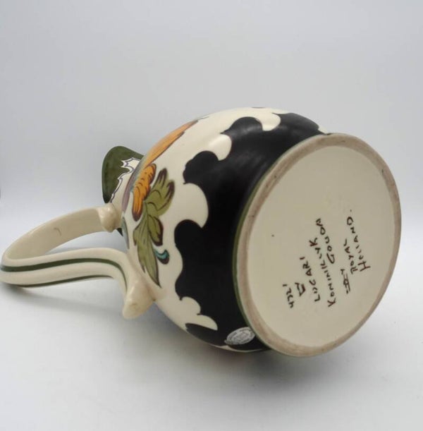 MOOIE GROTE GOUDA KERAMIEKEN KAN MET HAND BESCHILDERD FLORAAL PATTERN. LOGARI PATTERN.