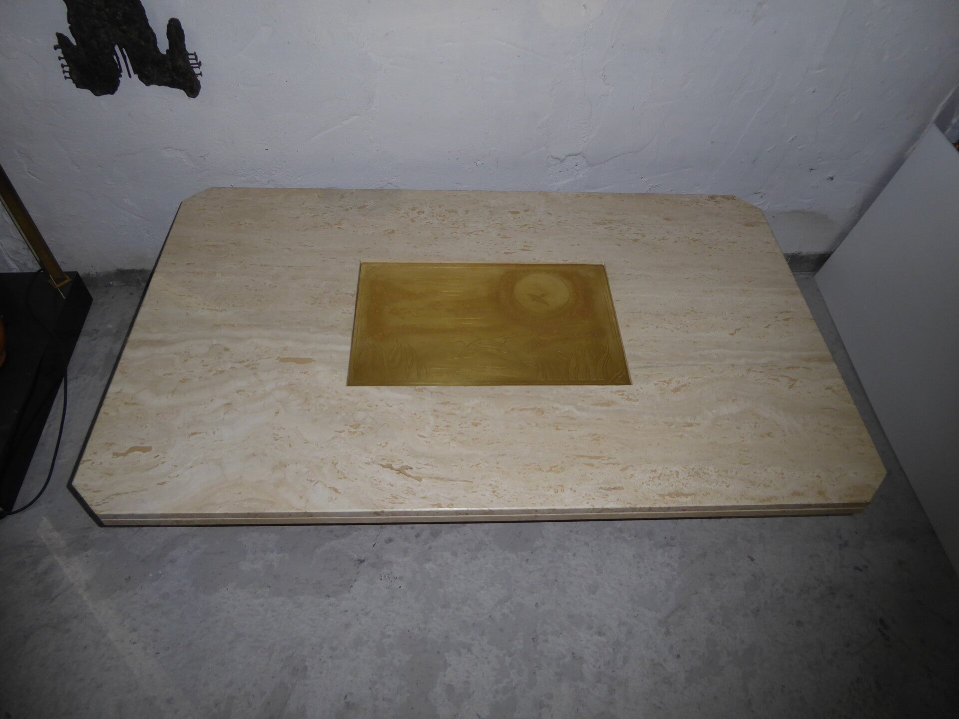TRAVERTINE ETCHED BRASS GEORGES MATTHIAS COFFEE TABLE VINTAGE NUMBERED