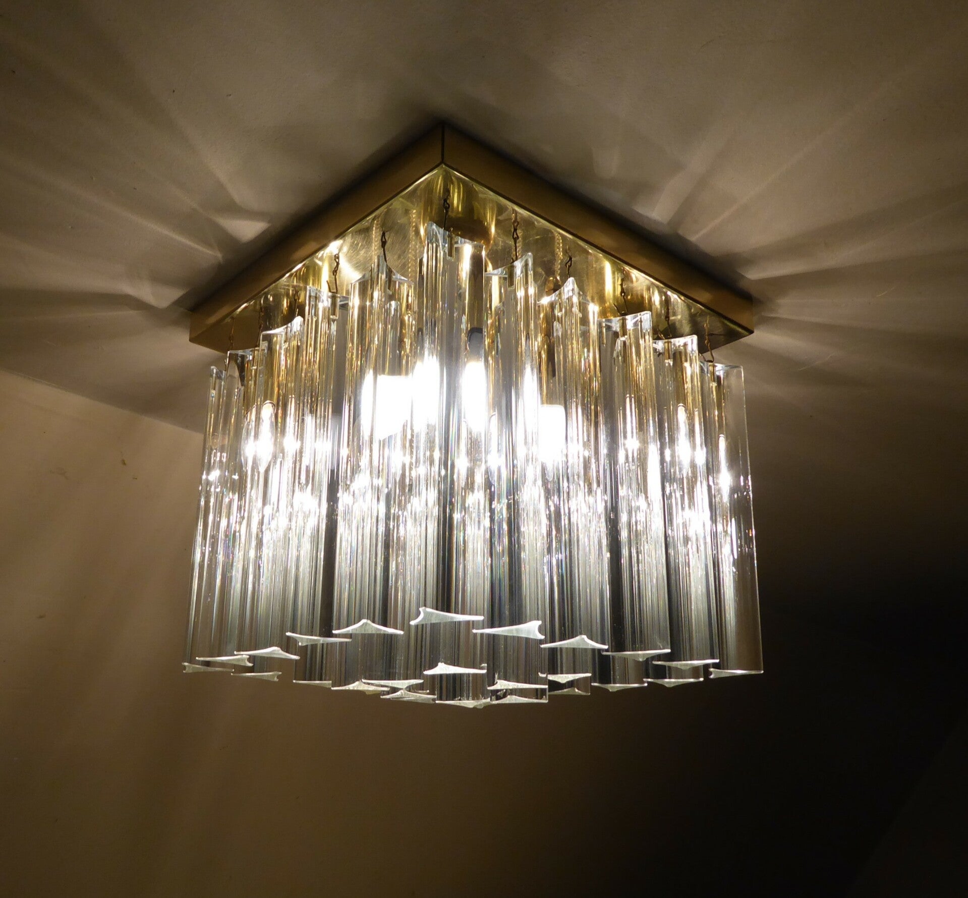 WONDERFUL CUBE CEILING LAMP MADE OUT OF MURANO CRYSTAL PRISMES. MODEL CALLED TRILOBE. CREATION BY PAOLO VENINI IN THE 1970s.