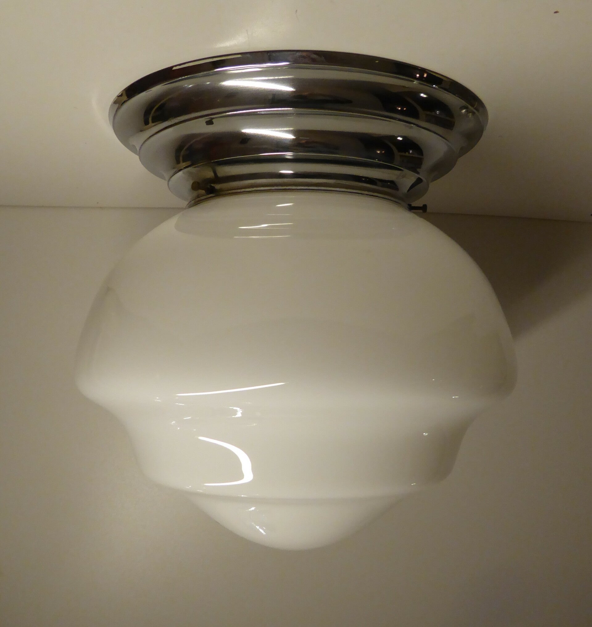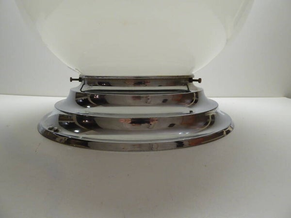 BEAUTIFUL BAUHAUS ART DECO CEILING LAMP IN WHITE OPALINE AND CHROME. SIGNED BY VAL SAINT LAMBERT BELGIUM. CHROME MOUNTED